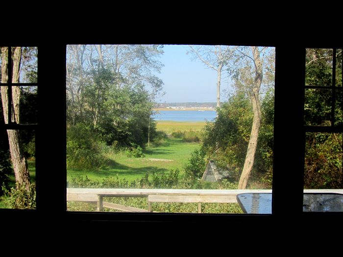 Views of Wellfleet harborExterior of home Fully applianced Kitchen Living Area Sitting area Harbor Views Full BathroomBedroomBedroom Space Bedroom with Twin Beds Bed room with twin bedsBack deck with grillGrassy yard Harbor view